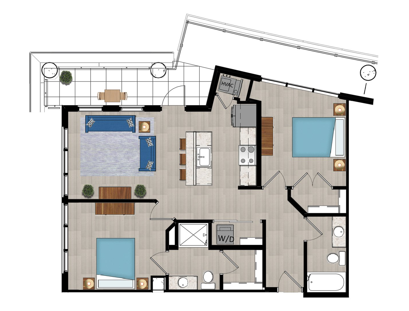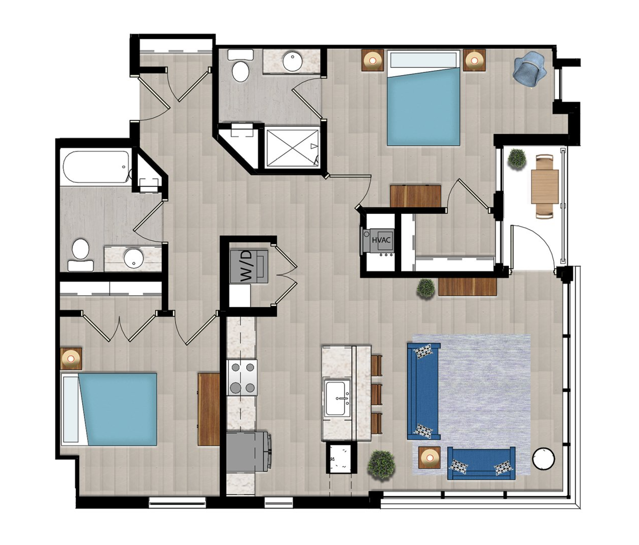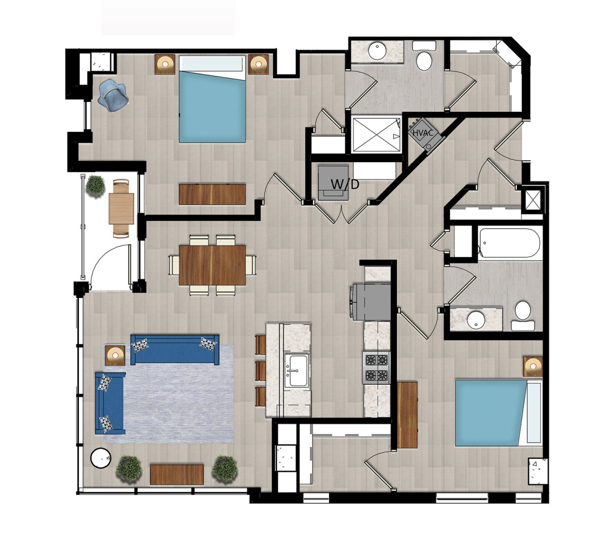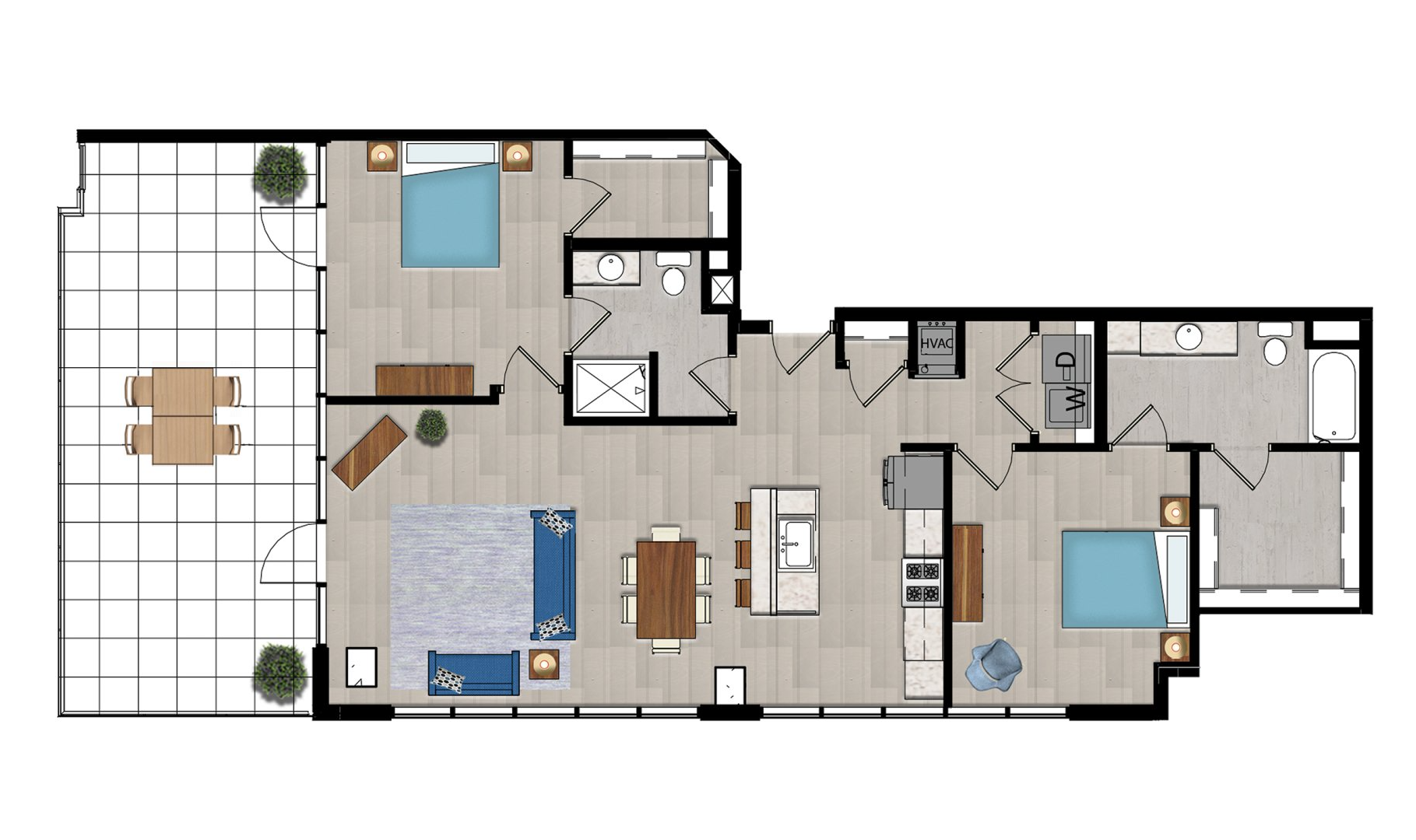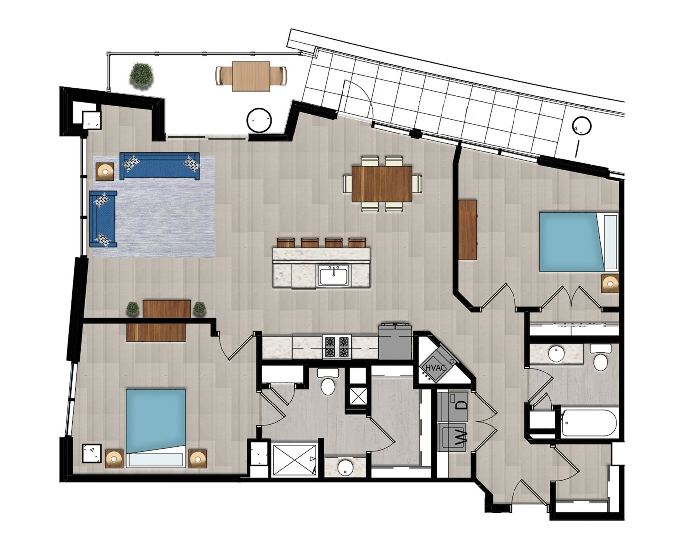 High-end modern apartment living located