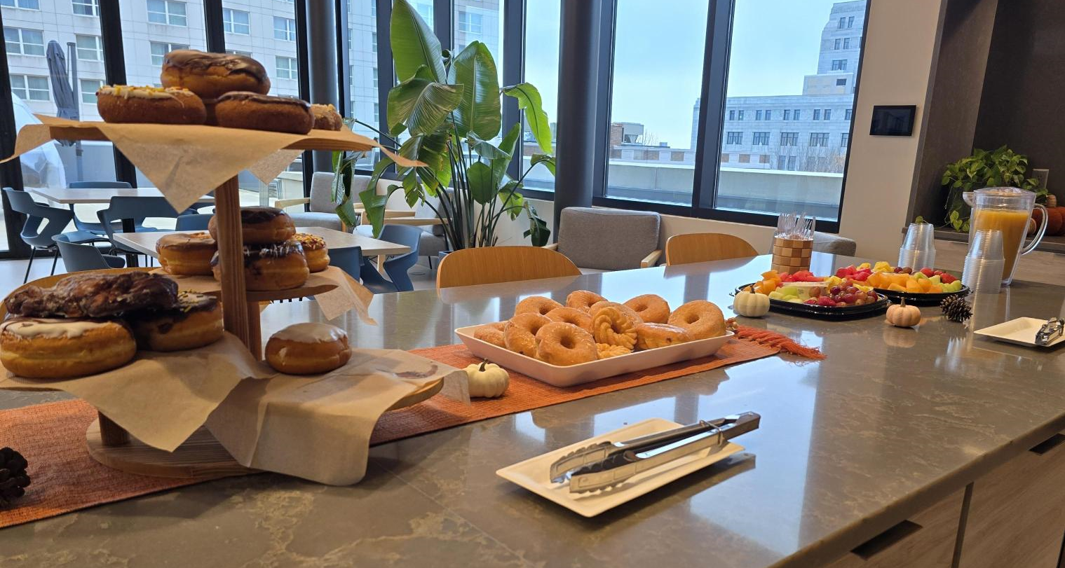 The scent of maple syrup and crispy batter wafted through the lounge as neighbors gathered around the waffle maker, loading up their plates with warm waffles, fresh fruit, bagels, and donuts. It wasn’t just a breakfast. It was a reminder of how shared moments, no matter how simple, can make apartment living feel a little more like home.