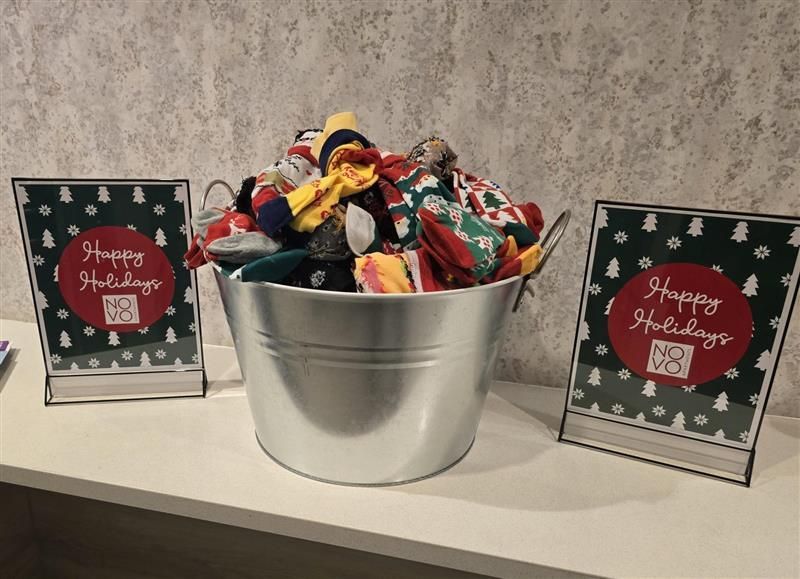 At NoVo, we believe the best way to spread holiday cheer is… waffles. And fruit. And maybe some socks with snowflakes and candy canes.