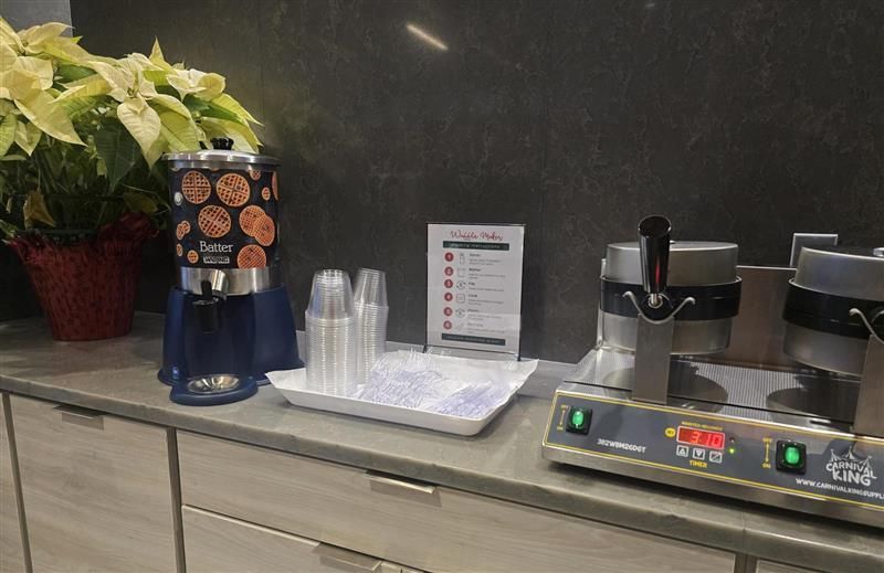This December, our residents kicked off the season with a cozy holiday breakfast, complete with fresh bananas, juicy clementines, a tower of apples, and enough granola bars to fuel a full day of festive fun. Our community lounge turned into a holly jolly hotspot, filled with the smell of waffles crisping up in the iron and the sight of friends gathered around festive décor, mugs in hand. (Yes, there was coffee. We’re not monsters.)