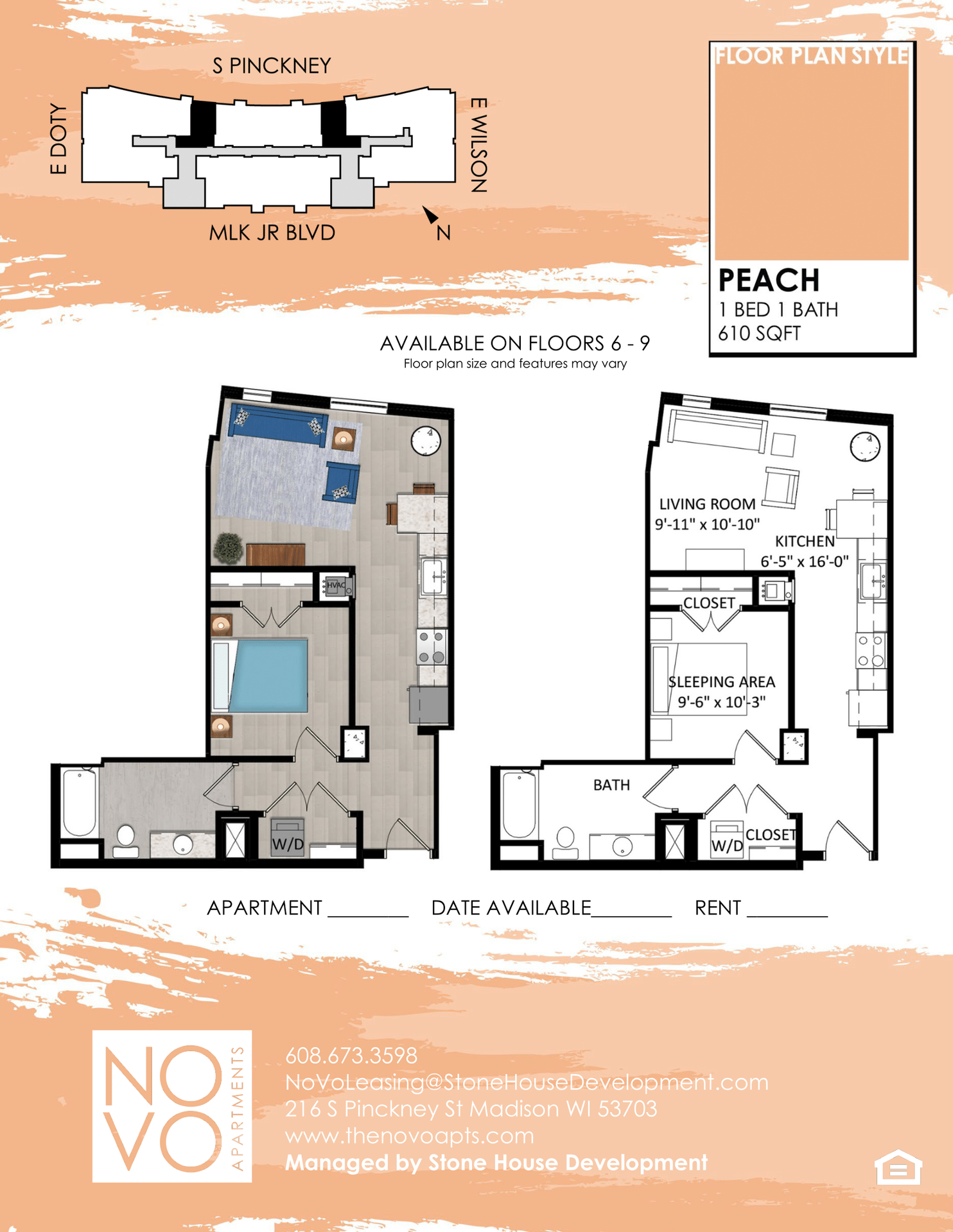 Peach Floor Plan - 1 Bedroom Income Restricted - Downtown